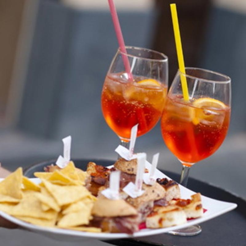 La invitiamo al nostro Aperitivo offerto dalla Direzione: per lei un calice di Prosecco oppure un analcolico e una selezione di stuzzichini caldi e freddi.